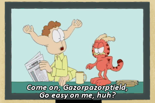 Come on, Gazorpazorptield, Go easy on me, huh?