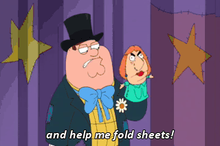 (HIGH-PITCHED VOICE) Make me dinner, and go rent Twilight,