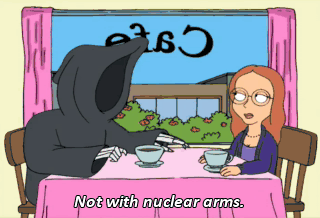 Not with nuclear arms. You can't hug your children with nuclear arms. Check, please.
