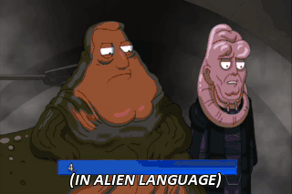 (IN ALIEN LANGUAGE) (AUDIENCE LAUGHING) Um... Leia, wow.