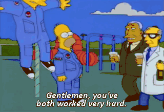 Gentlemen, you've both worked very hard. And in a way, you're both winners. But in another more accurate way, Barney is the winner. Mmm. Congratulations, Barney. That's very gracious of you, Homer.