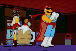 Oh, yeah Chug! Chug! Chug! Chug! Chug! Chug! Chug! Chug! I can't! I'm the designated driver! Yeah, that's swell. Duff wholeheartedly supports the designated driver program.