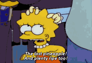 The last pineapple! And plenty ripe too! But I'm not fruit! I'm a kid! That's what the pumpkin said.
