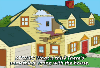 STEWIE: What is this? There's something wrong with the house. I don't like change! Peter, you can't just slap together flimsy structures in the yard.