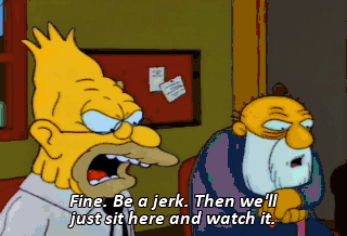 Fine. Be a jerk. Then we'll just sit here and watch it.