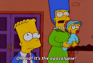 Oh, no! It's the apocalypse! - Bart, are you wearing clean underwear? - Not anymore.