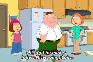 Oh, and he makes jokes. Nice going, Lois. (WHINES) Dad, are you ready?