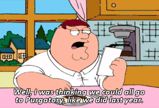 Well, I was thinking we could all go to Purgatory, like we did last year. This isn't bad. It's not that good. But it's not that bad. It's so-so. Uh, More or less.