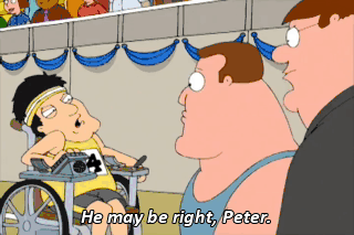 He may be right, Peter. Joe, he's an android. Don't let him push you around. You can do this. I know you can. Yeah. Yeah!