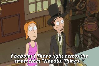 f babbles f That's right across the street from "Needtul Things, " where you can get evil items for tree! Diabolic son of a motherf--