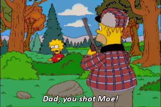 Dad, you shot Moe! Oh, no! This time I really am gonna faint. Ow! Son of a--