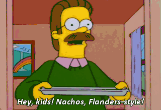 Hey, kids! Nachos, Flanders-style! That's cucumbers with cottage cheese!