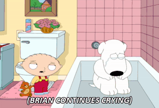 (BRIAN CONTINUES CRYING) Don't worry, Rupert. I know how to get him out of his funk.