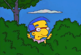 Lisa? With people? If they're impressed by her, I'm gonna Bart their world. Okay, Milhouse, you know the drill. Right. You go over and wow them. I hide in the shrubs. Hot stuff comin' through.