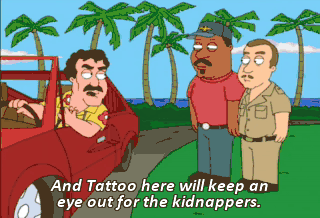 And Tattoo here will keep an eye out for the kidnappers.