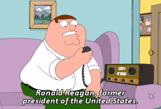 Ronald Reagan, former president of the United States. Oh, my God! Hey, Quagmire, guess who I'm talking to right now? Yup. Brian, will you take me down to babyGap?