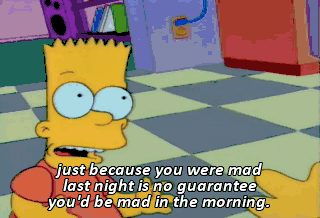just because you were mad last night is no guarantee you'd be mad in the morning.