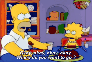Okay, okay, okay, okay. Where do you want to go ? Anywhere but hamburgers, pizza or fried chicken. Fine ! We'll go to Mars ! There's that new sushi restaurant on Elm Street.