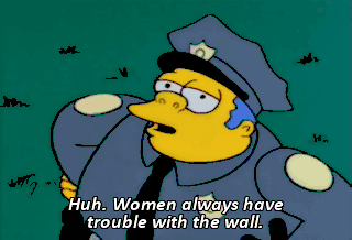 Huh. Women always have trouble with the wall. They never seem to find the door.