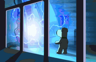 Brian, what the hell are you doing in here? What's happening to my time machine? I don't know, man. I saw Meg leaving a minute ago, going, "Mwa-ha-ha-ha-ha." But I don't know.