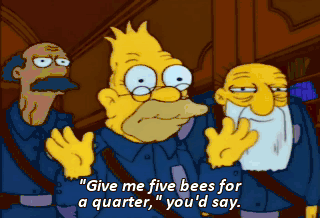 "Give me five bees for a quarter," you'd say. Now, where were we? Oh, yeah! The important thing was that I had an onion on my belt,
