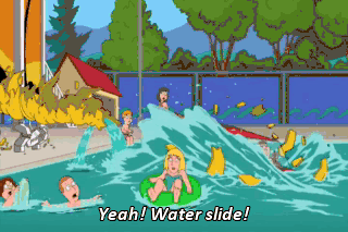 Yeah! Water slide! Summer fun! It was the greatest day of my life, and I owe it all to alcohol. Peter, it sounds to me like alcohol is a very destructive influence in your life.