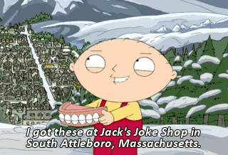 I got these at Jack's Joke Shop in South Attleboro, Massachusetts. Remember, if it ain't funny, it ain't worth jack. (GROANING) Bitch.