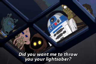 Did you want me to throw you your lightsaber? Yeah, about 10 minutes ago!