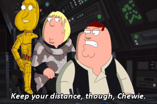 Keep your distance, though, Chewie. But don't look like you're trying to keep your distance. How am I supposed to do that? I don't know, fly casual! (WHISTLING)