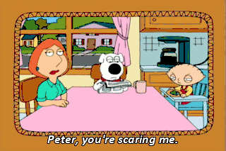 Peter, you're scaring me. I'm beginning to think you're losing your grip on reality. Boring. I'm gonna go see what else is on. Peter! Keep an eye on Stewie. Don't move! aah! A little helP?