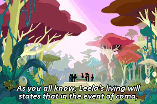 As you all know, Leela's living will states that in the event of coma, her body is to be fed to the wild cyclophage, a highly endangered creature that eats only Cyclopses. Yup, that's what her donor card says.