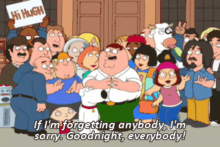 If I'm forgetting anybody, I'm sorry. Goodnight, everybody! Our thoughts are with you, Chevy!