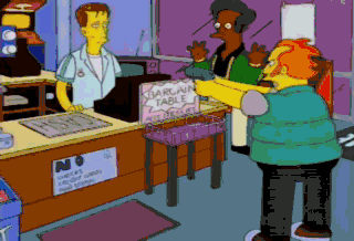 NO-O-o! Apu! Oh! The searing kiss of hot lead. How I've missed you. I mean, I think I'm dying. - Uhh. - Oy.