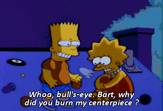Whoa, bull's-eye. Bart, why did you burn my centerpiece ?