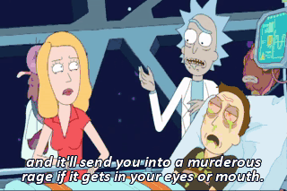 and it'll send you into a murderous rage if it gets in your eyes or mouth.