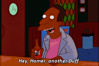 Hey, Homer, another Duff. Hey, Homer, do you mind if I bring in some outside food?