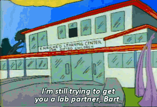 I'm still trying to get you a lab partner, Bart. If we don't get any volunteers soon, I'll assign somebody. Say, what's that ? It looks dangerous. Well, it's really pretty top secret, ma'am.