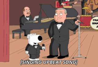 (SINGING UPBEAT SONG) (SCATTING) Get out of here.