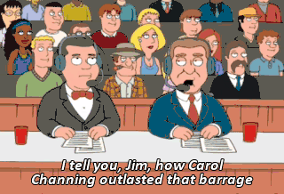 I tell you, Jim, how Carol Channing outlasted that barrage