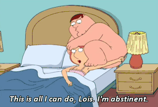 This is all I can do, Lois. I'm abstinent. That is it. I am gonna have regular sex with you whether you like it or not. No! I wasn't asking your permission.