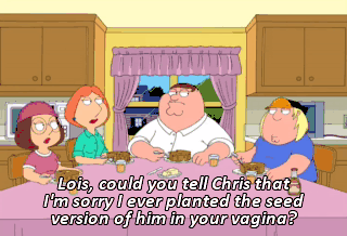 Lois, could you tell Chris that I'm sorry I ever planted the seed version of him in your vagina?