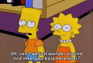 Oh, can't we just wander around and meet you back here later? Mmm, okay. Just be careful. Would you kids like to come with me? Sounds good to me. Let's go. Okay. I guess so.
