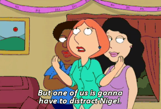 But one of us is gonna have to distract Nigel. Oh, no, no, No. I couldn't. But What about Loretta? Nigel looks like he's down with the swirl.
