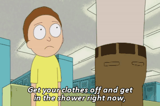 Get your clothes off and get in the shower right now, Y-y-y-you got to trust me, Marty,