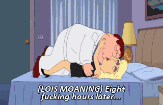 (LOIS MOANING) Eight fucking hours later... Oh, I got to say, I was fantastic.