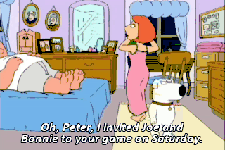 Oh, Peter, I invited Joe and Bonnie to your game on Saturday.