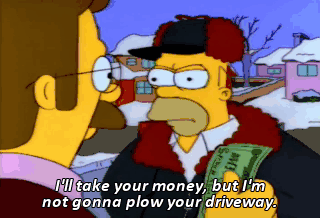 I'll take your money, but I'm not gonna plow your driveway.