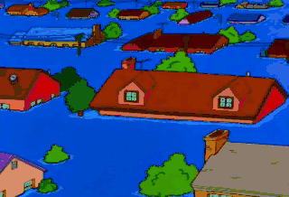 Ohh! I hate these flood pants. Hey, they're working! My feet are soaked, but my cuffs are bone-dry! Everything's comin' up Milhouse!