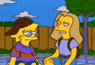 Hey, you up? You can use my board. No! Okay. Thanks. That's very, um, rad of you. Hmm. Hey, Bart! Lisa's skateboarding with some cool kids.