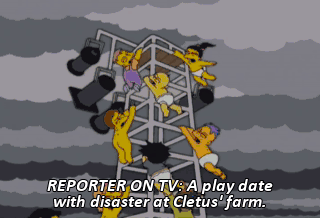 REPORTER ON TV: A play date with disaster at Cletus' farm.